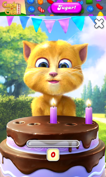 Além de conversar, você pode interagir com o gatinho de diversas formas: dar comida, fazer cócegas, cutucar... Como novidade do aniversário do Ginger também tem um bolo com velas e até mesmo língua de sogra.